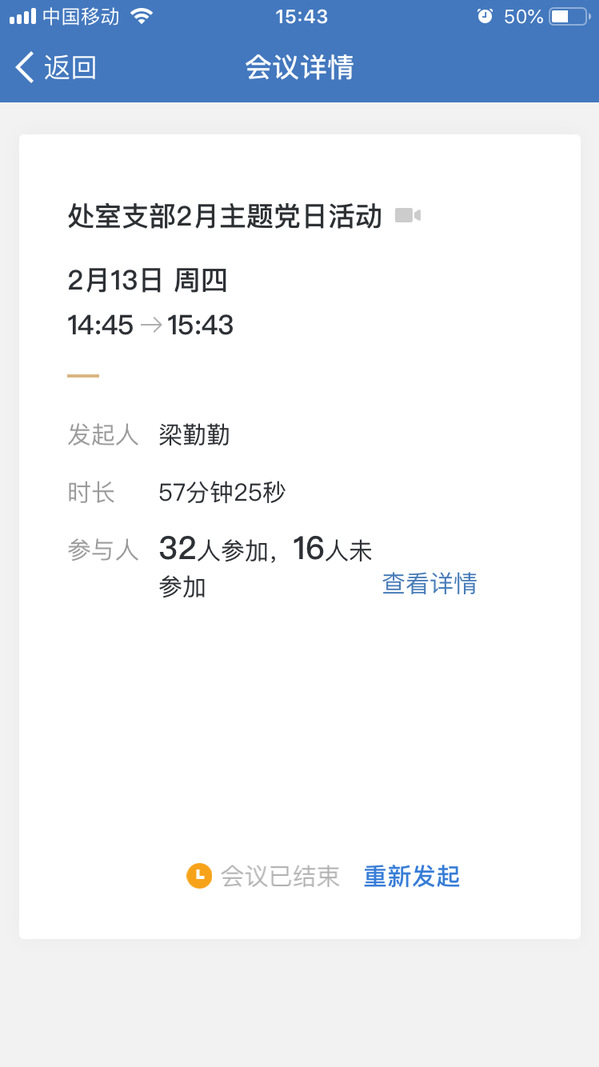 为了在新型冠状病毒感染的肺炎防控严峻斗争中,充分发挥基层党组织战斗堡垒和党员干部教师先锋模范作用,根据校党委的安排,处室党支部于2020年2月13日下午以企业微信视频会议的形式集中开展了“堡垒筑在一线、党员冲在一线”线上主题党日活动,会议由党支部书记梁勤勤主持,支部共有32人参加了此次主题党日活动,另有12人因公请假(参加上级或线上教学会议)。