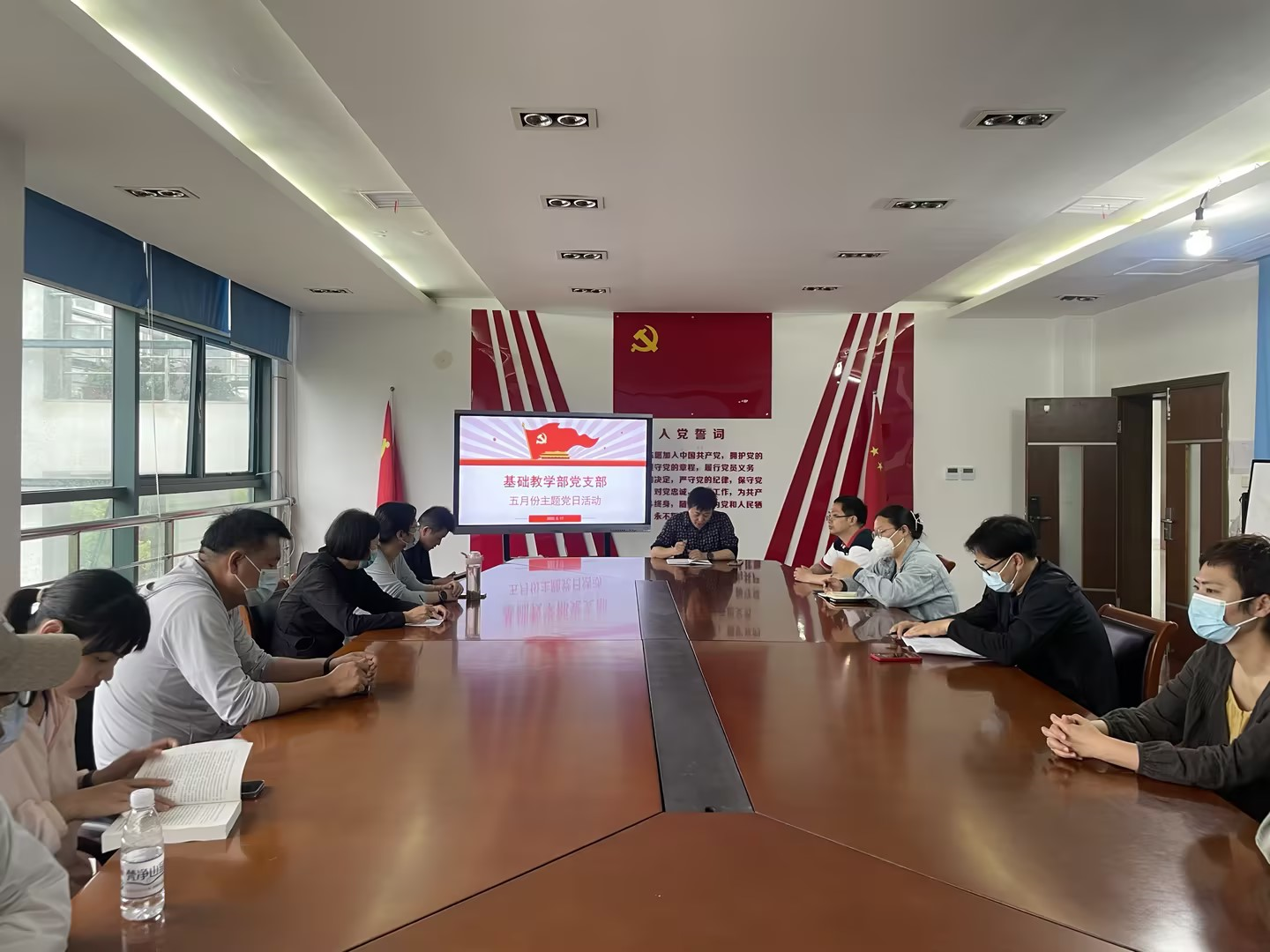 2023年5月17日下午,基础教学部党支部在行政楼201开展了5月份主题党日活动。活动由支部书记刘庆根同志主持,支部13名党员参加了此次活动。