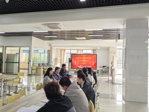 11月14日下午,轨道交通工程学院党支部在轨道实训楼一楼大厅开展了11月份主题党日学习。支部书记李蒋同志主持,轨道交通工程学院党支部全体党员参加。